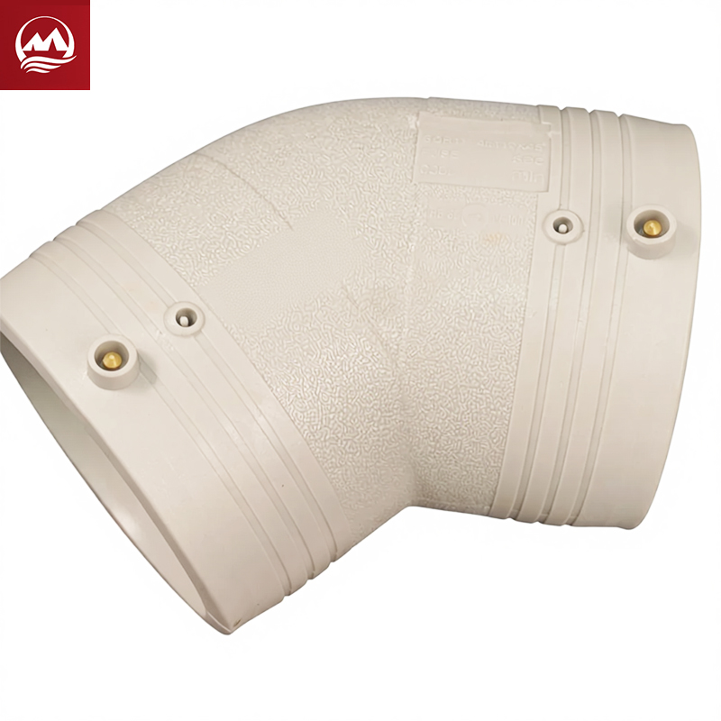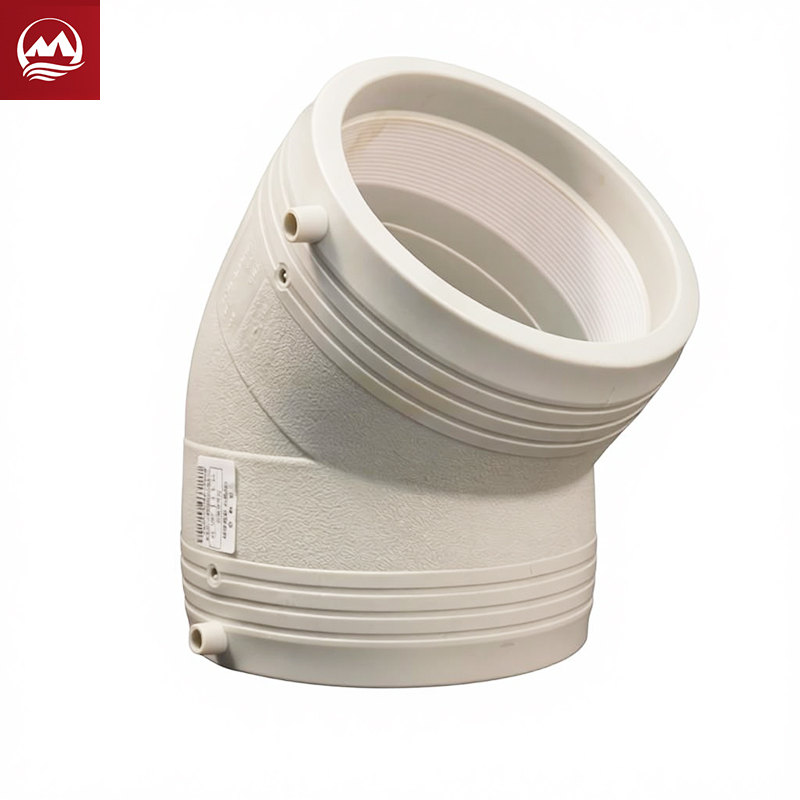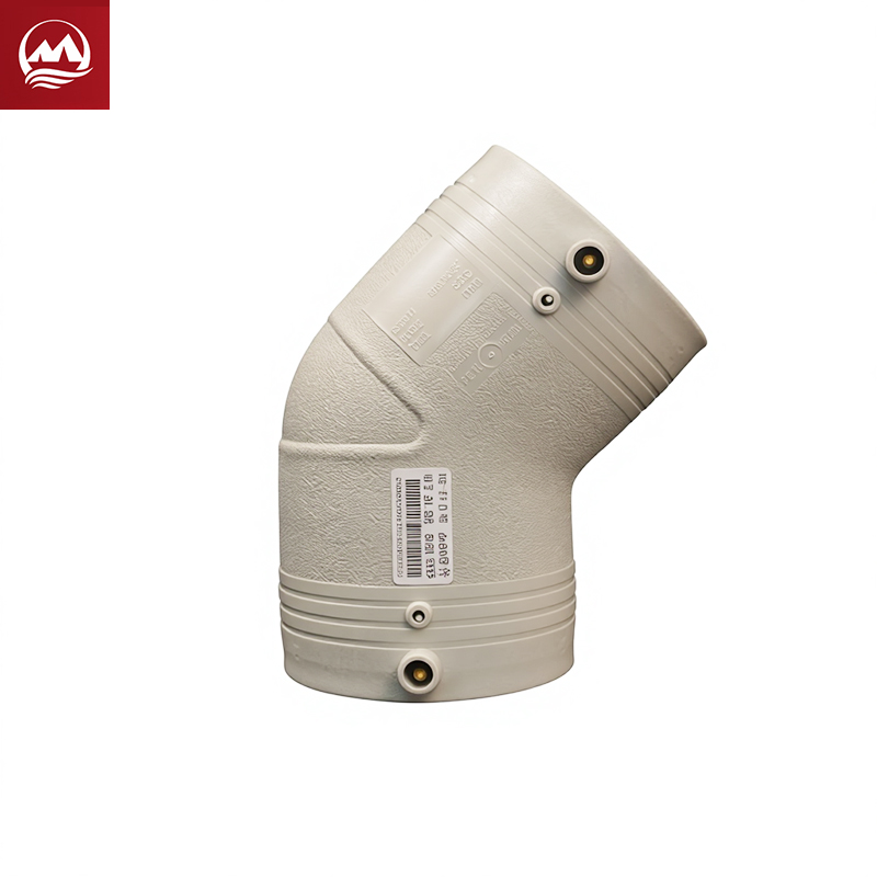 The EF 45° Elbow is utilized in piping systems to facilitate a smooth forty-five-degree change in direction. This specific design aims to optimize fluid dynamic performance by significantly reducing flow resistance and effectively mitigating the impact of water hammer effects. This is particularly crucial for long-distance, high-velocity water and gas transmission pipelines, helping to maintain system energy efficiency and stability. This elbow is also constructed from high-quality PE100 material, and its integrated electrofusion technology ensures the strength and seal integrity at the transition point. Through this gentle turning radius, it can accommodate pipeline routing through challenging terrains and provides greater flexibility in pipe design, for instance, allowing for a smooth 90-degree turn by combining two 45-degree elbows. The EF 45° Elbow is the preferred choice for engineering projects that seek high operational efficiency while needing to mitigate the risks associated with fluid pressure fluctuations.