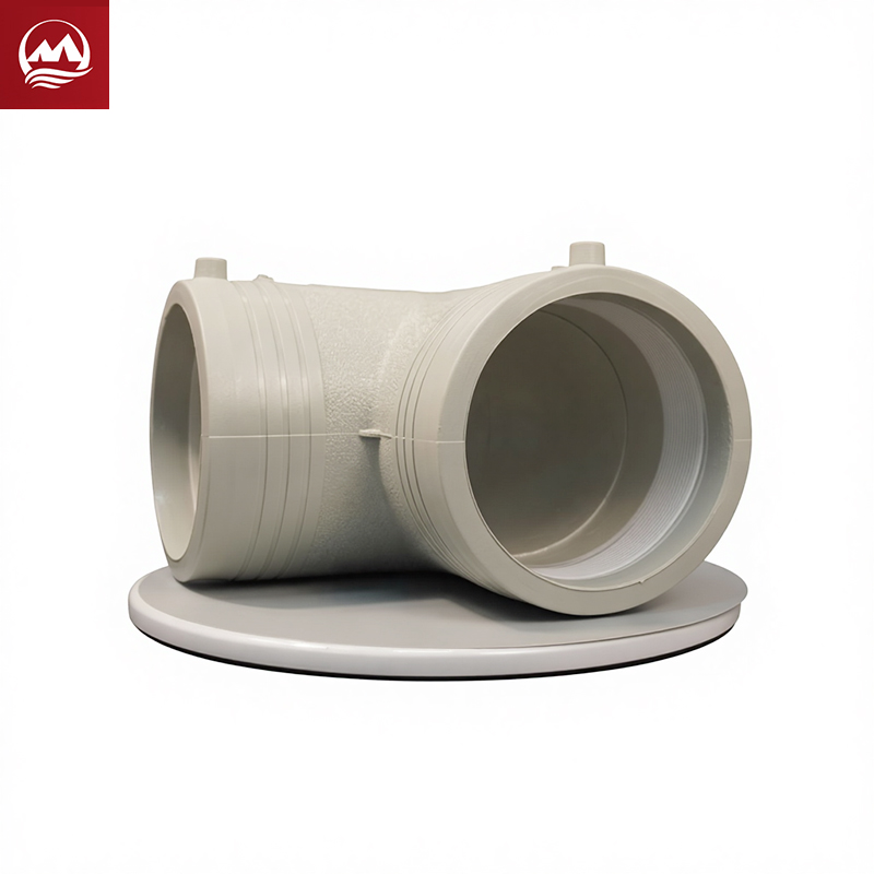 The EF 90° Elbow is specifically engineered to execute a precise ninety-degree directional change within a Polyethylene piping system. In complex pipeline layouts, this elbow is the ideal choice for bypassing obstacles, altering the pipeline route, or connecting to vertical equipment interfaces. The elbow is produced via high-precision injection molding, which ensures the accuracy of the turning angle and the uniformity of the wall thickness. This effectively reduces pressure loss at the bend and minimizes internal stress concentration within the pipe. High-performance heating wires are installed in the electrofusion zones at both ends of the elbow, guaranteeing a strong, durable, and leak-proof connection at this high-stress turning point. Compared to on-site thermal bending, the electrofusion elbow offers superior connection quality and controllability, preventing internal weld beads that could obstruct the fluid path. This fitting is indispensable for critical applications that demand strictly controlled routing and highly reliable directional changes.