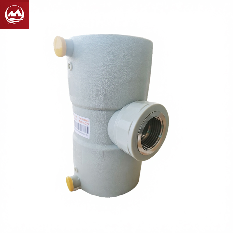 The EF Female thread 3-way tee is a highly integrated composite fitting designed to create a 90-degree branch on a PE pipeline and immediately transition that branch into a standard internal metal thread interface. The tee features two electrofusion ports for connection to the PE pipeline, while the central port embeds a high-quality, corrosion-resistant metal insert, typically brass or stainless steel, which forms the female thread connection. This design significantly simplifies the process of connecting the PE network to external sensors, pressure gauges, or metal fittings that possess a male thread. The high strength and corrosion resistance of the metal insert ensure the long-term stability and sealing performance of the threaded connection. By integrating the threading function directly into the electrofusion tee, it reduces the need for additional transition fittings and minimises potential leak points, ultimately shortening on-site installation time. This female-threaded tee is particularly practical for utility service line meter interfaces, small equipment connections, and applications requiring the installation of monitoring components on PE pipelines.
